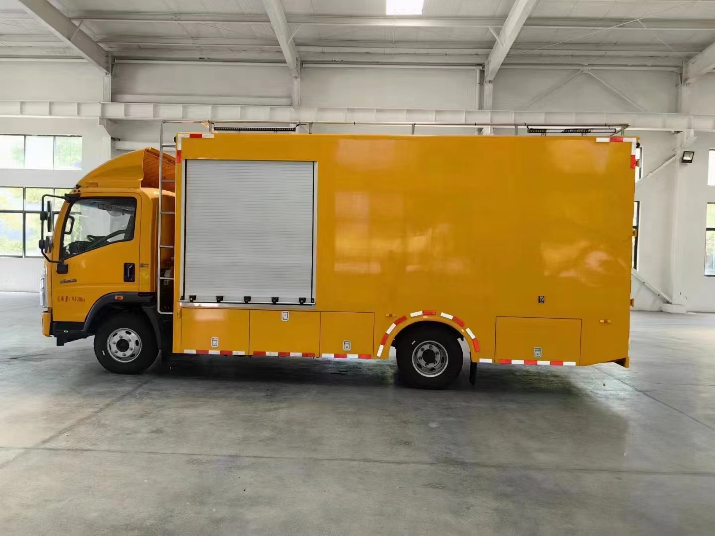 | 上裝配置 | 1、采用超大瓦楞板箱體或保溫隔熱箱體,箱體尺寸4200*2200*2000mm,右側箱體雙開門,后尾部箱體雙開門。按車廂大小貨架做上下兩至三層,帶攔板,防止物品掉落。車廂內頂部安裝2套LED照明燈,方便夜間操作,配150千瓦發電機組,或選配康明斯200千瓦斯坦福發電機組,6臺500方便攜式永磁排水泵,揚程10米,單臺泵排水量500m³/h,總排水量3000m³/h,揚程10m,重量32kg,單泵功率22KW,總功率132KW,出水口徑為200mm。 | ||