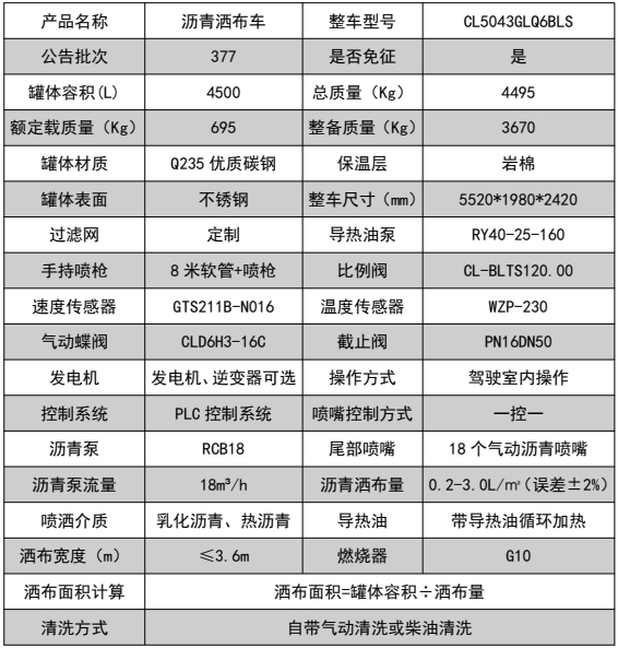 ??????湖北程力汽車:程力CL5043GLQ6BLS型江淮藍牌智能瀝青灑布車產品型號及參數配置,程力CL5043GLQ6BLS型江淮藍牌智能瀝青灑布車高清圖片,程力汽車系列程力CL5043GLQ6BLS型江淮藍牌智能瀝青灑布車最新報價請撥打客服熱線。車輛主要配置 產品商標 程力牌 公告批次 385(擴展) 產品名稱 瀝青灑布車 產品型號 CL5043GLQ6BLS 總質量(Kg) 4495 罐體容積(m3) 0.81 額定載質量(Kg) 695 外形尺寸(mm) 5520 × 1980 × 2420 整備質量(Kg) 36...