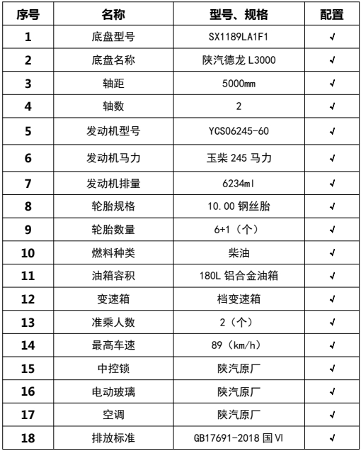 僅用軸距(mm):5000,該車為路面同步碎石封層專用車輛,主要專用裝置為瀝青罐,碎石箱及灑布系統(tǒng).側(cè)防護材料:Q235,采用焊接連接,后防護為專用裝置代替,下緣離地高430mm,ABS系統(tǒng)生產(chǎn)廠家及型號分別為:西安正昌電子有限責(zé)任公司(ZQFB-V);隨底盤選裝駕駛室,后部照明燈僅在駐車狀態(tài)下使用,起夜間照明作用,行駛過程中不可點亮。